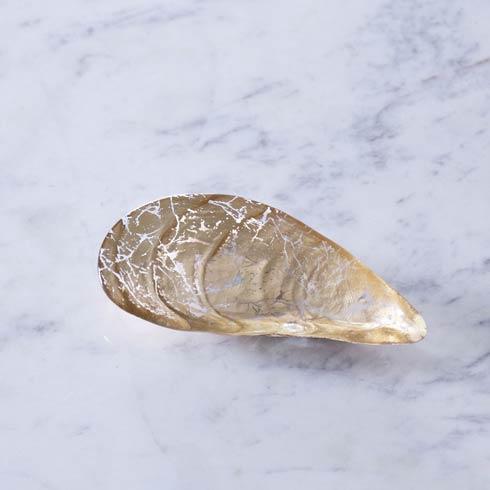 Two lovely shells for collection are distinguished by their pleasing naturalistic shapes and hand applied cracked gold foil. Lovely in the beach house, or nearly anywhere.