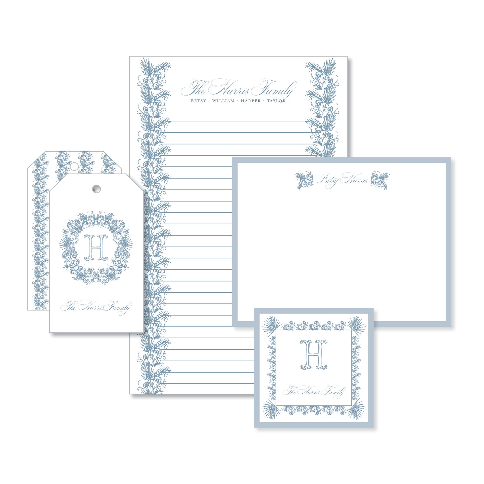 Medium set includes: 15 notecards (5.5x4.25") with envelopes, 16 gift tags (2.375x4”), 1 notepad (5.5x8.5” with 50 sheets), and 15 stickers (3” square)