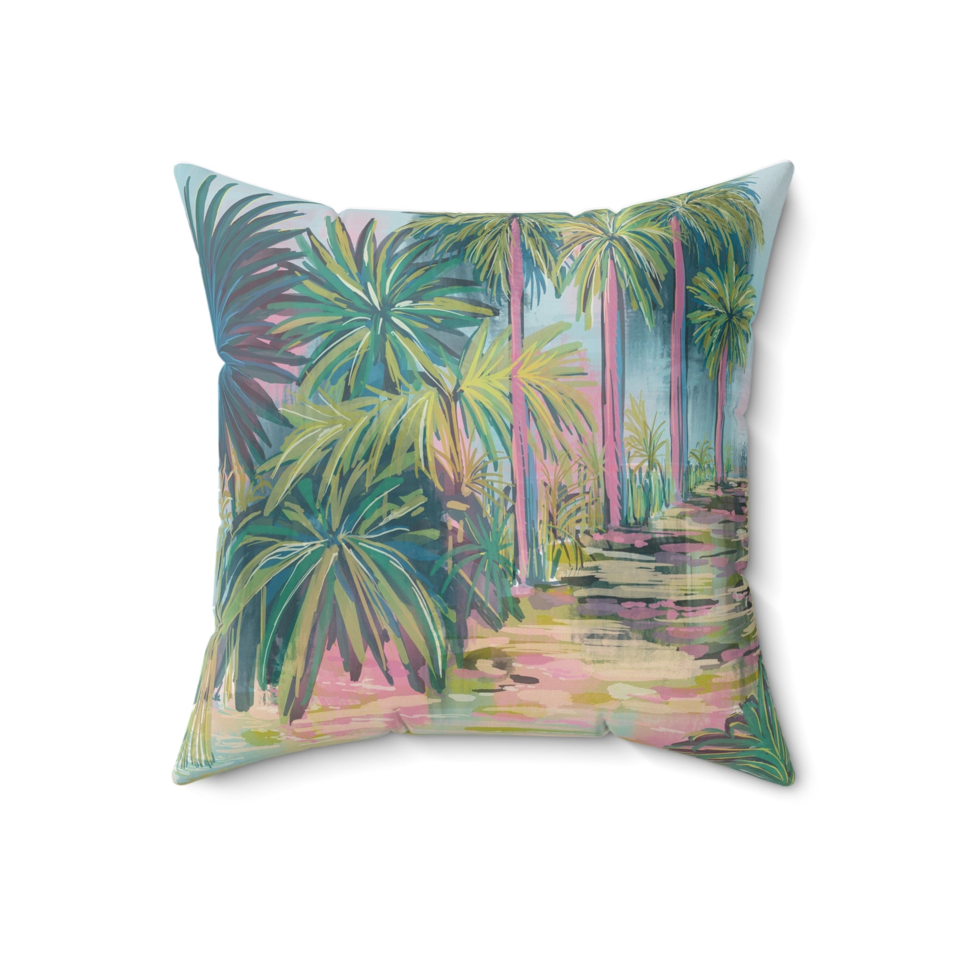Introducing the new "Palm Calm" watercolor art now featured on our textile collection, perfect for coastal cottage décor. Crafted from pristine linen fabric with a zipper closure and a solid reverse side, this pillow cover is exclusively available at The Cottage Shop. The design, hand-painted by Hayley Lane Suthers, draws inspiration from the palm tree-lined Laroche Avenue. Proudly made in the USA, with fabric printed in North Carolina and sewn locally at The Cottage Shop.
