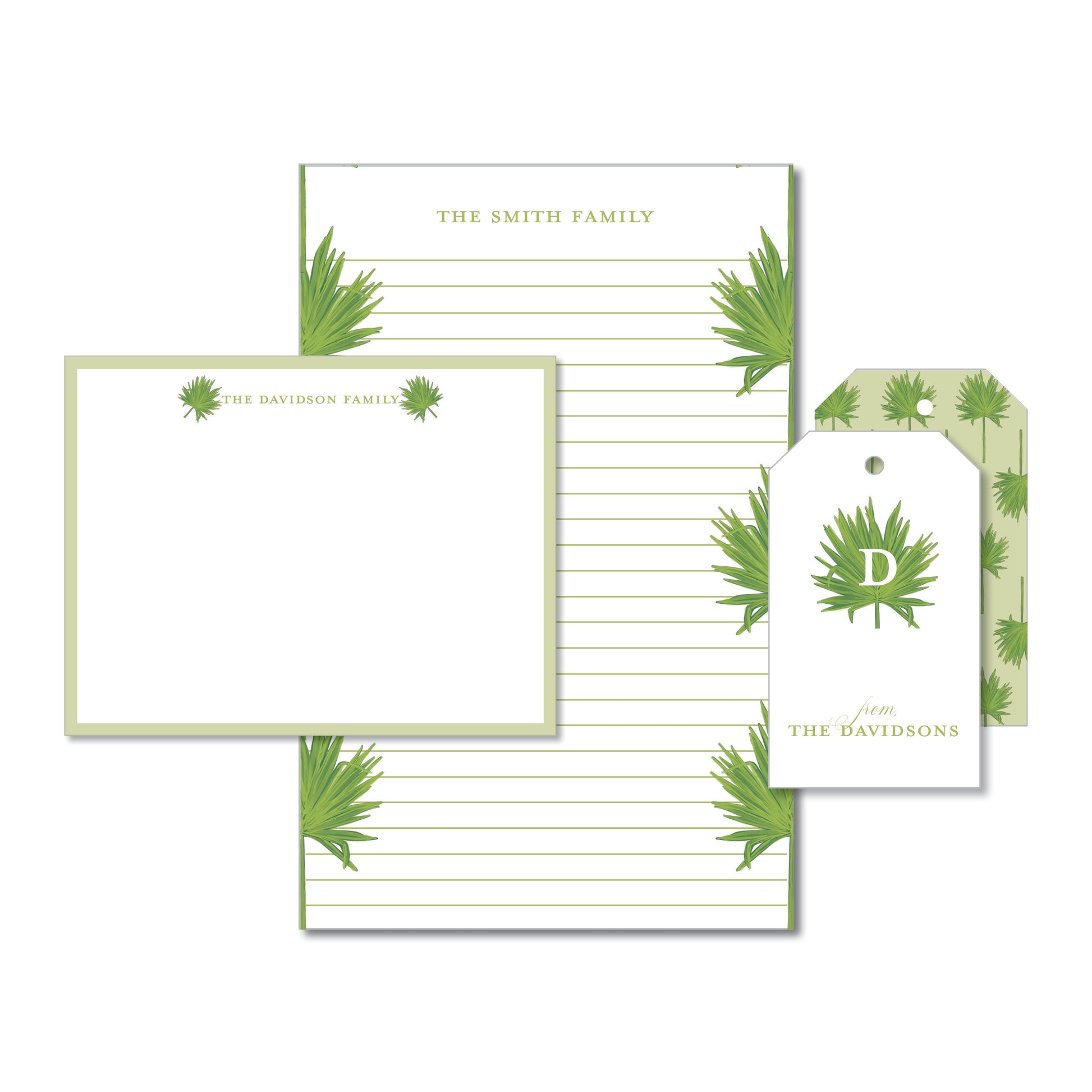 Small set includes: 10 notecards (5.5x4.25") with envelopes, 16 gift tags (2.375x4”) and 1 notepad (5.5x8.5” with 50 sheets)