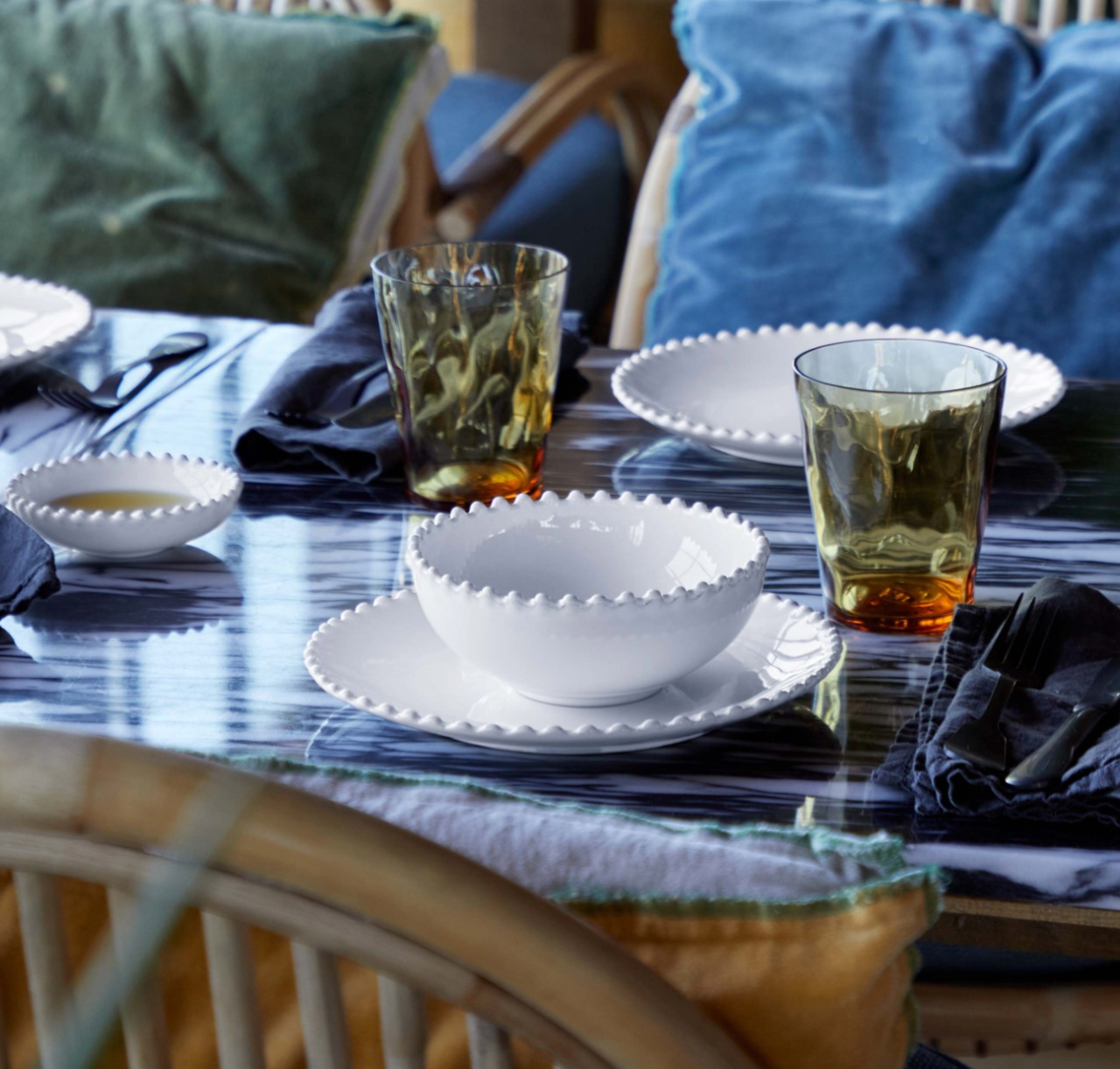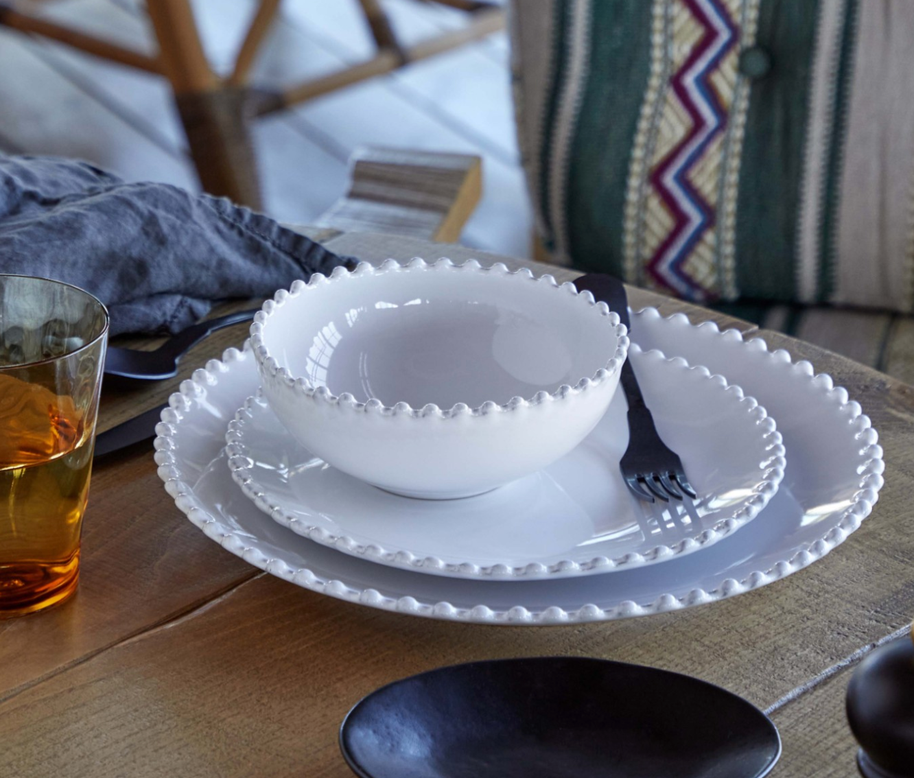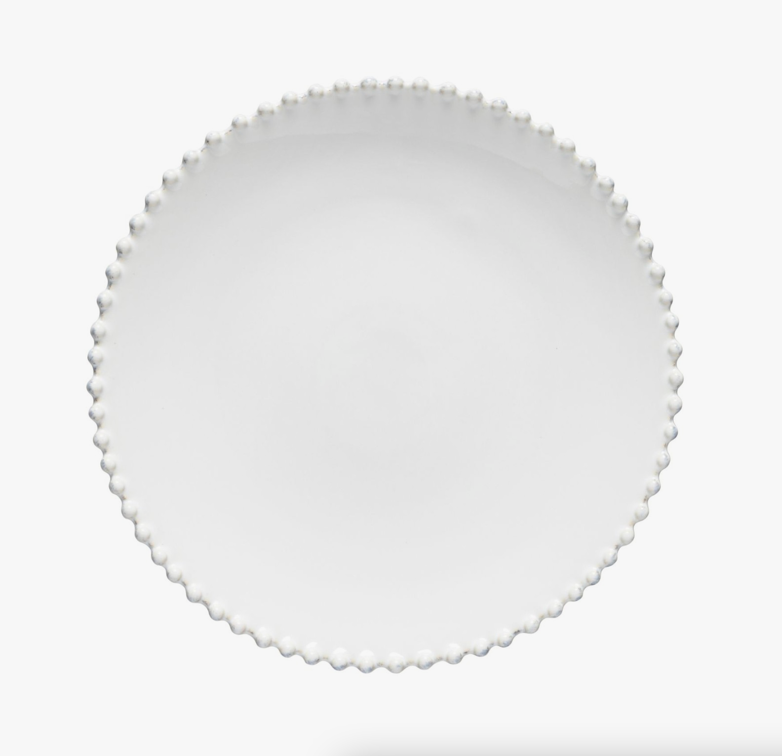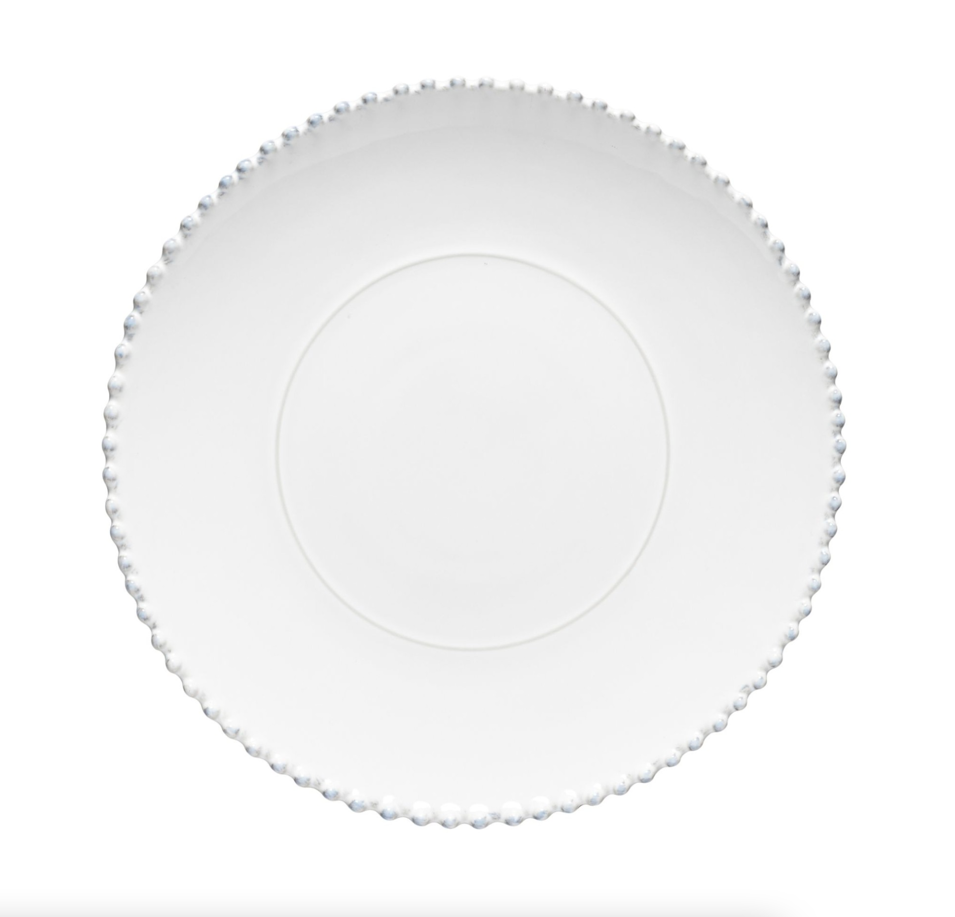 Simplicity at its finest. This fine stoneware made in Portugal has a delicate bead rim. Possibilities are endless with this darling design!