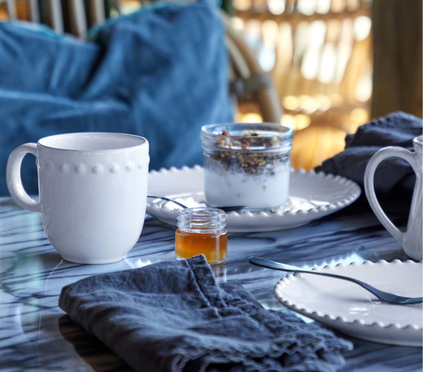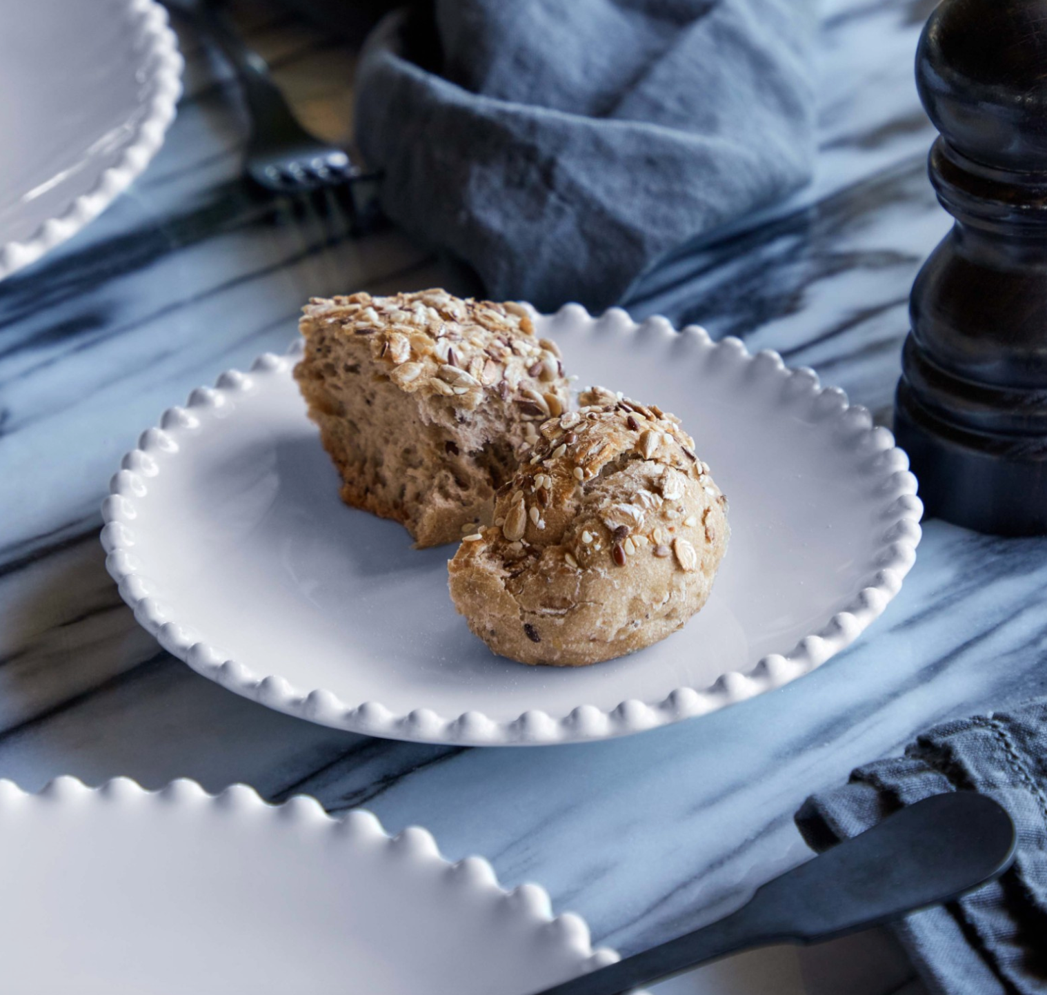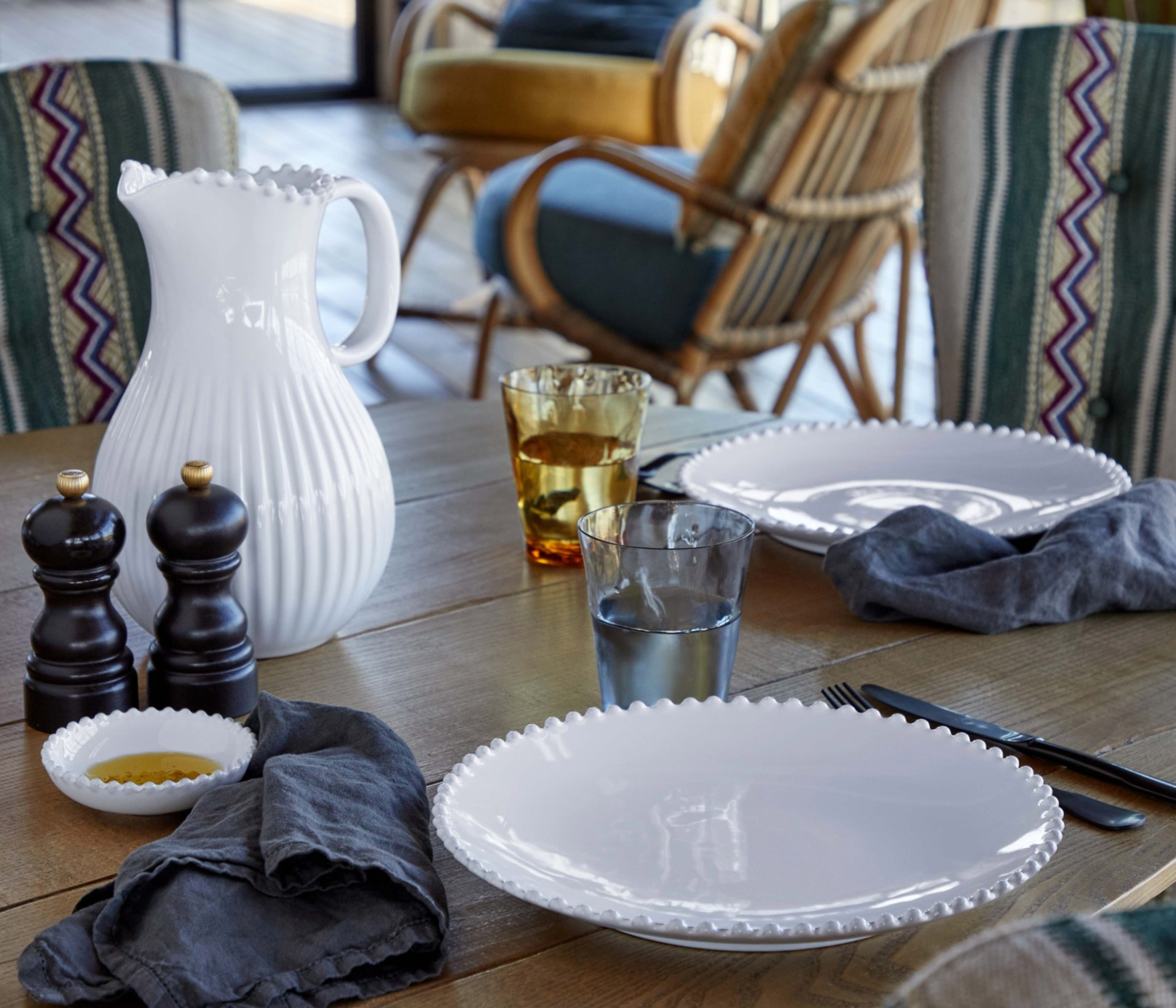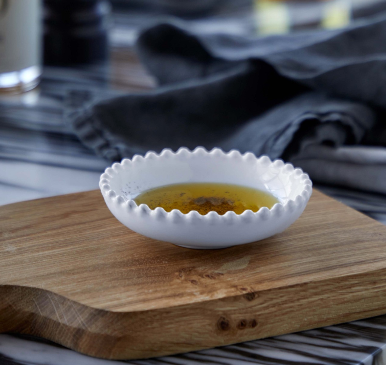 Simplicity at its finest. This fine stoneware made in Portugal has a delicate bead rim. Possibilities are endless with this darling design!