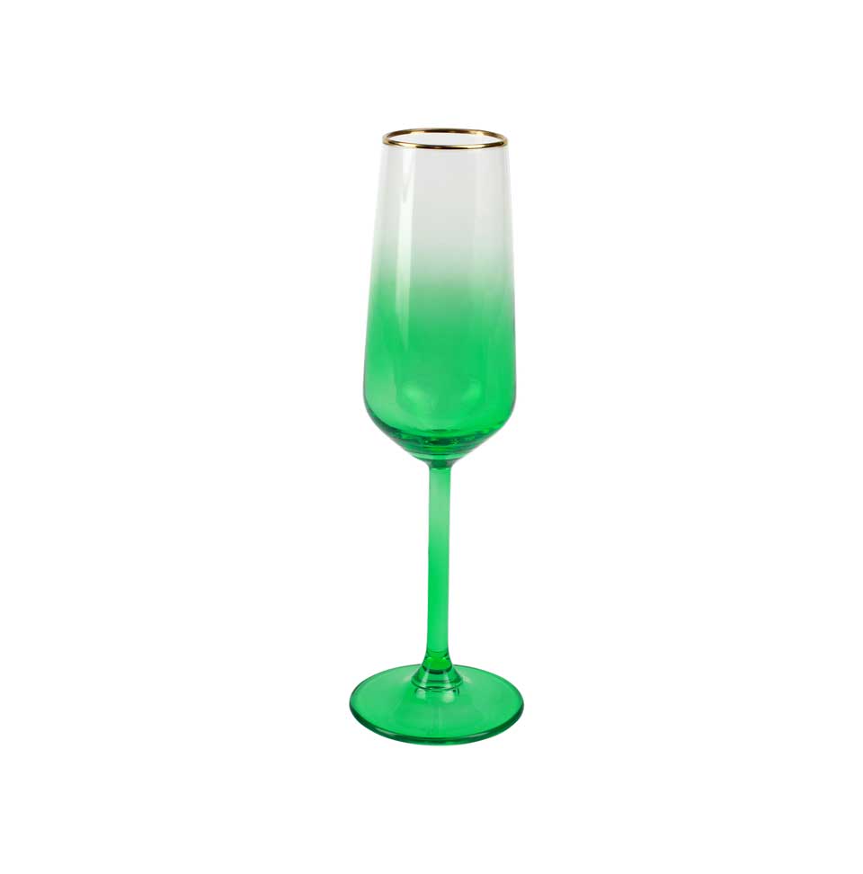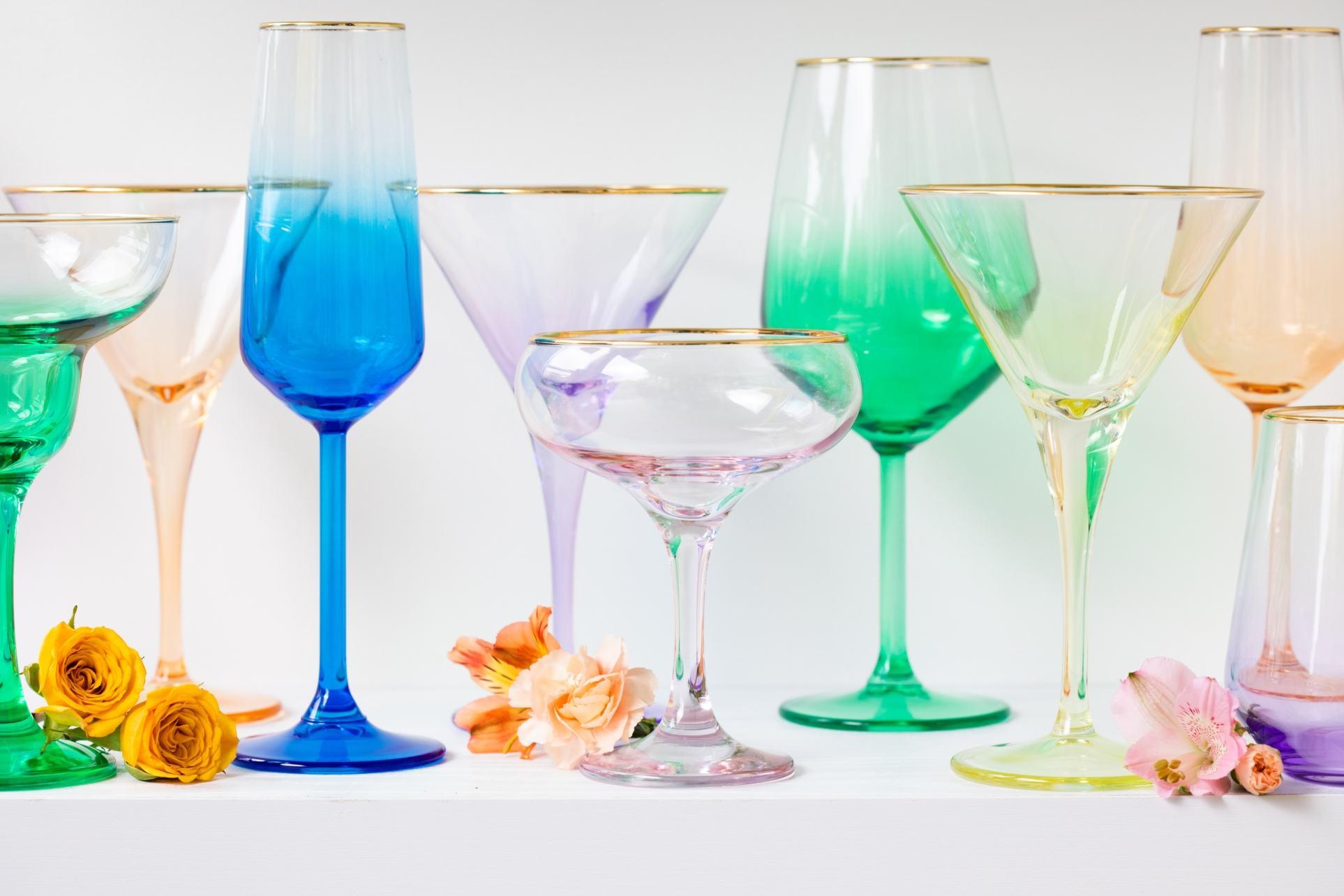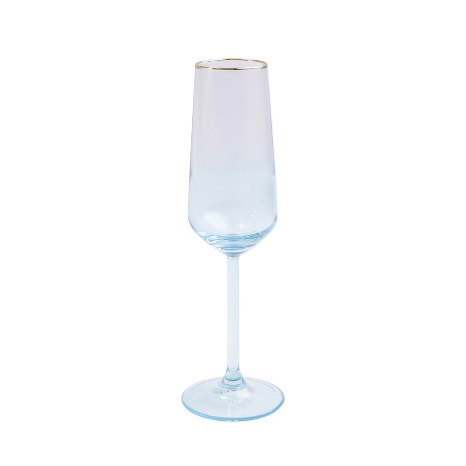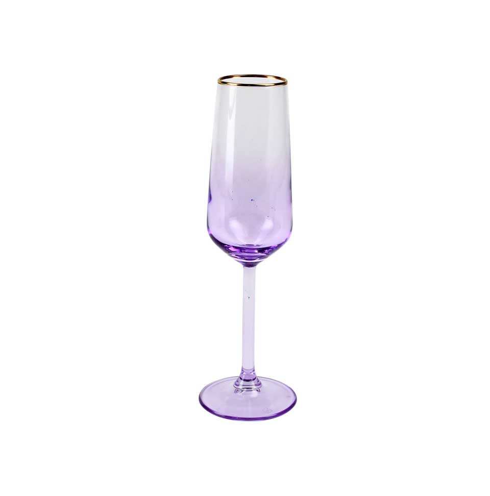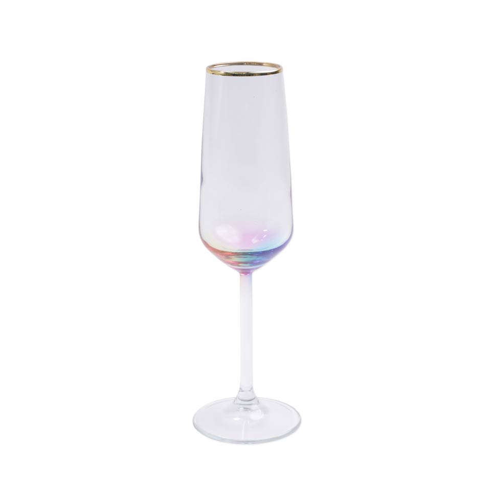 Add sparkle to any setting with a gilded gold rim and varied colored glass that refracts light on the Rainbow Champagne Flute.