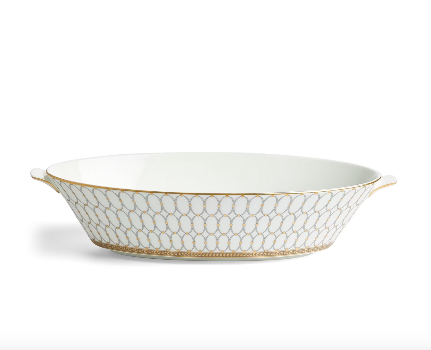 Elevate your dinner table with this Renaissance Grey Oval Serving Bowl. Present beautiful vegetable dishes, roasts or salads in this stylish serveware crafted from fine bone china. Adorned with archive inspired patterns influenced by Renaissance design and Jasper cameo with delicate gold detailing, mix and match with other pieces and colours form the Renaissance family.