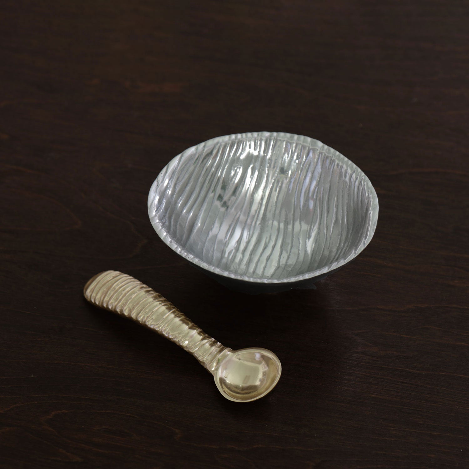 Sustainably made these handsome handcrafted GIFTABLES Ripples designs are dishwasher safe. Deeply furrowed, rippling surfaces and contrasting metal tones distinguish the two-part GIFTABLES Ripples Small Gold Bowl with Gunmetal Spoon (Gold and Gunmetal).