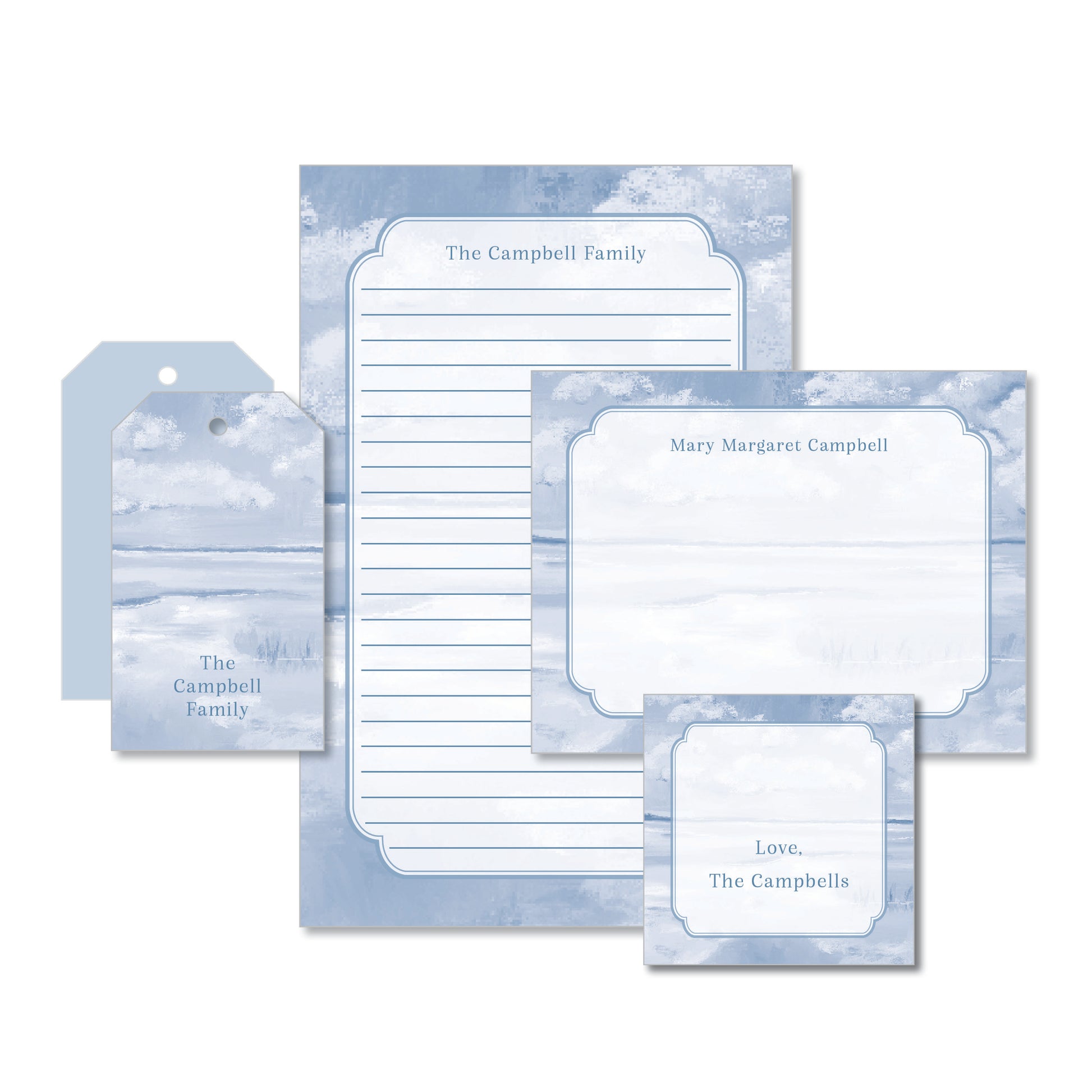 Medium set includes: 15 notecards (5.5x4.25") with envelopes, 16 gift tags (2.375x4”), 1 notepad (5.5x8.5” with 50 sheets), and 15 stickers (3” square)