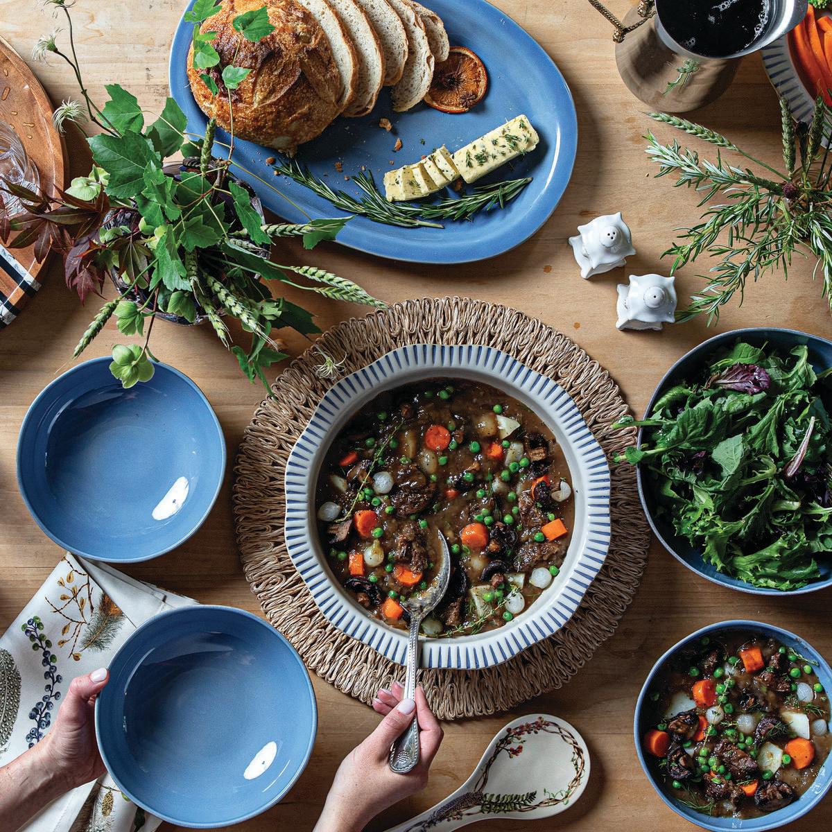 Equally stunning and simplistic, radiant stripes in breezy shades of blue adorn this dinnerware collection. Perfectly sized, this serving bowl is ideal for adding a touch of wanderlust to your table.