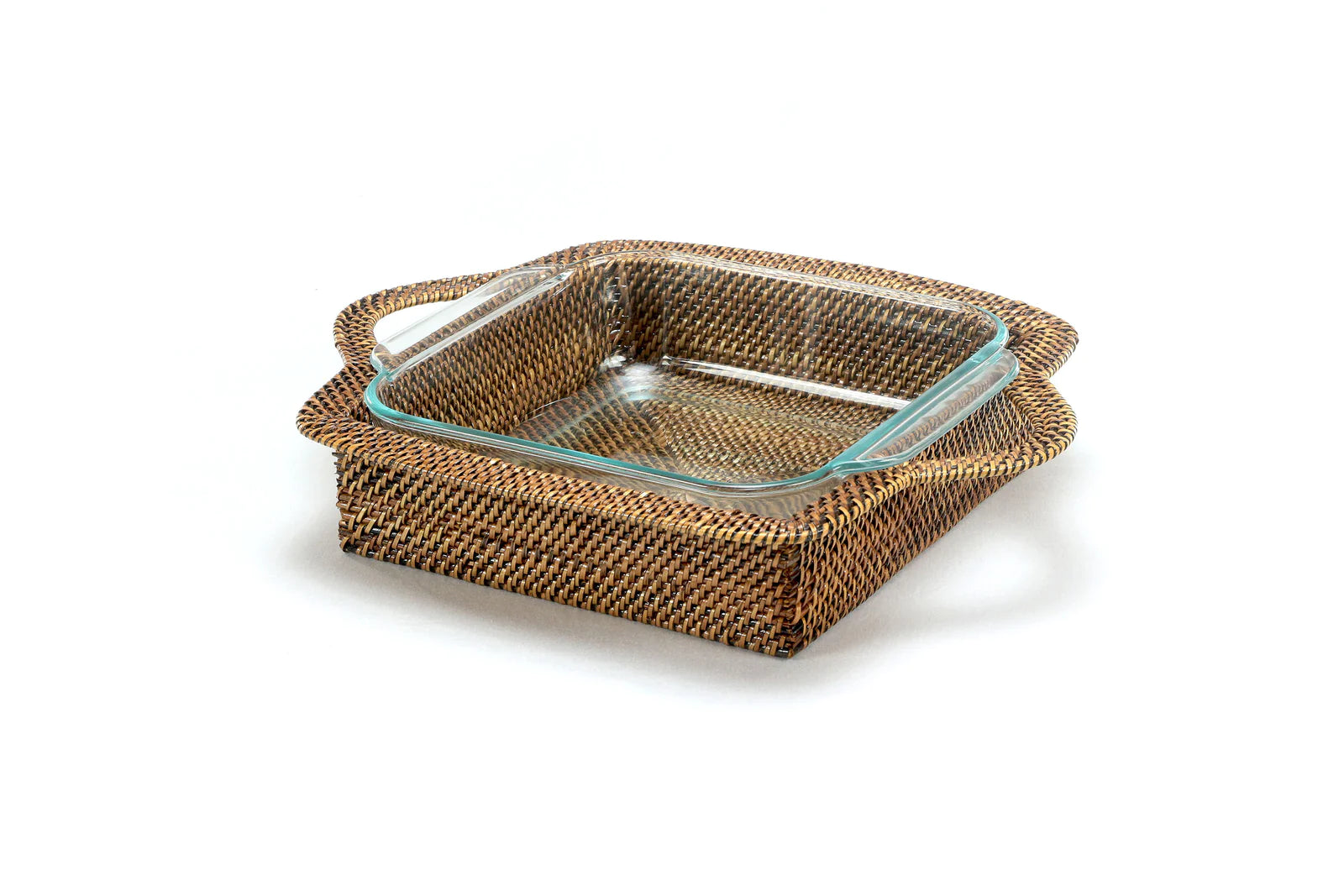 A casserole dish is necessary for every cook. The perfect kitchen tool to master the culinary art of food presentation is this handcrafted glass serving basket made of sturdy, naturally heat-resistant vines.