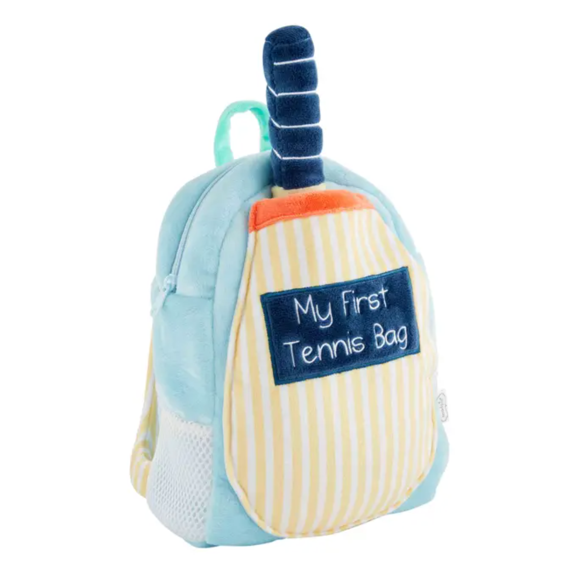 Your future doubles partner needs this Tennis Plush Play Set. The six piece set comes with a plush tennis bag that reads "My First Tennis Bag". The bag holds a plush racket, two tennis balls, a water bottle and a visor. This plush play set is intended for children 18 months and older.