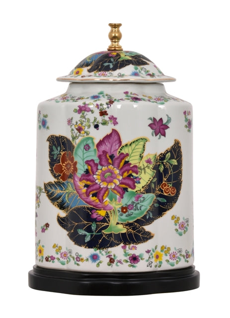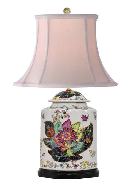 PORCELAIN TOBACCO LEAF SCALLOPS OVAL TEAJAR TABLE LAMP