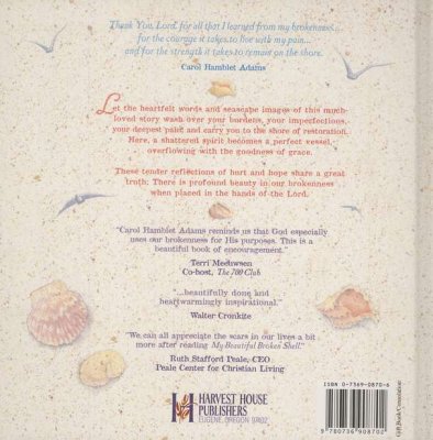 Words of hope to refresh the soul. A beautiful gift with outstanding illustrations and thought provoking, heartfelt words. Lovely seascapes and a much loved and tender story. Walking along a North Carolina beach one day, Carol Hamblet Adams picked up a scallop shell. It was broken. She threw it down. Then she picked it up again. In that moment, God spoke to her about her own brokeness, her own imperfections. The resulting reflections are gathered in this book of hope whose gentle prose refreshes the heart and mind like a spring sea breeze. Together, words and images bring God's comfort to those who feel buffeted by life's storms.