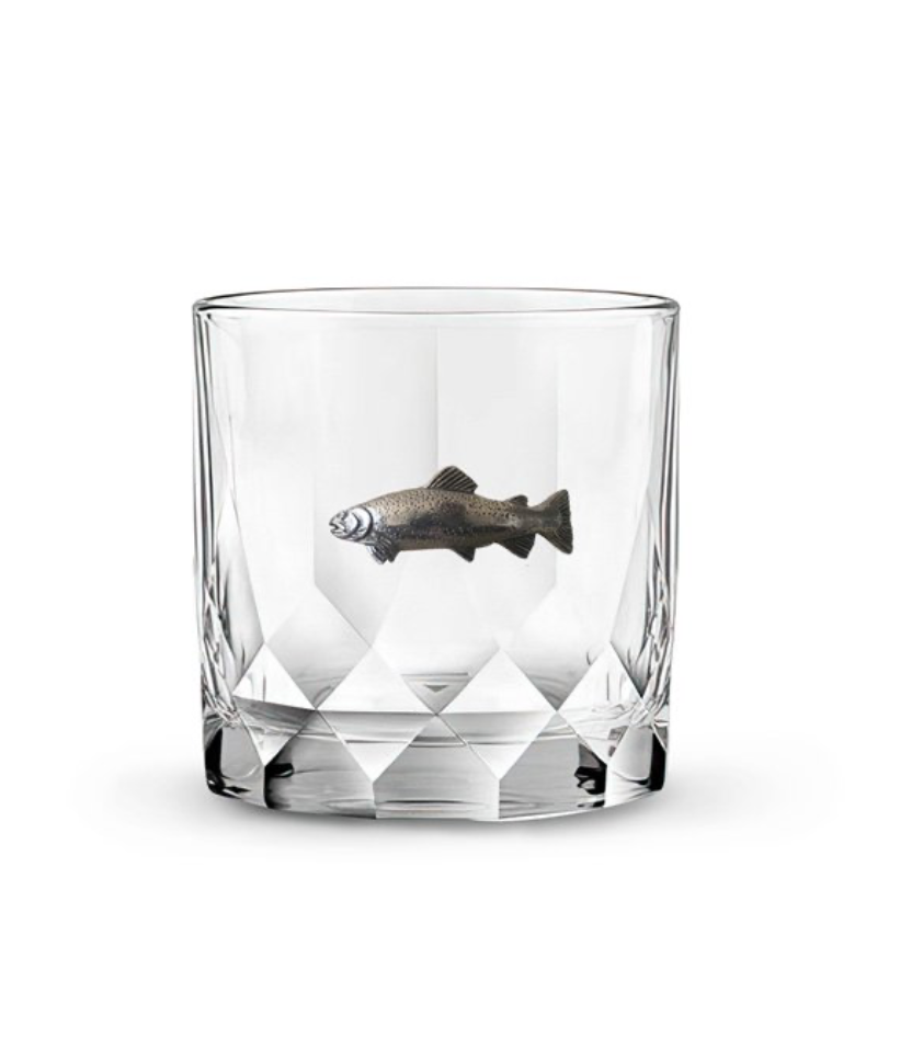 Classic Faceted Rocks Glass/Tumbler with fine pewter Trout motif