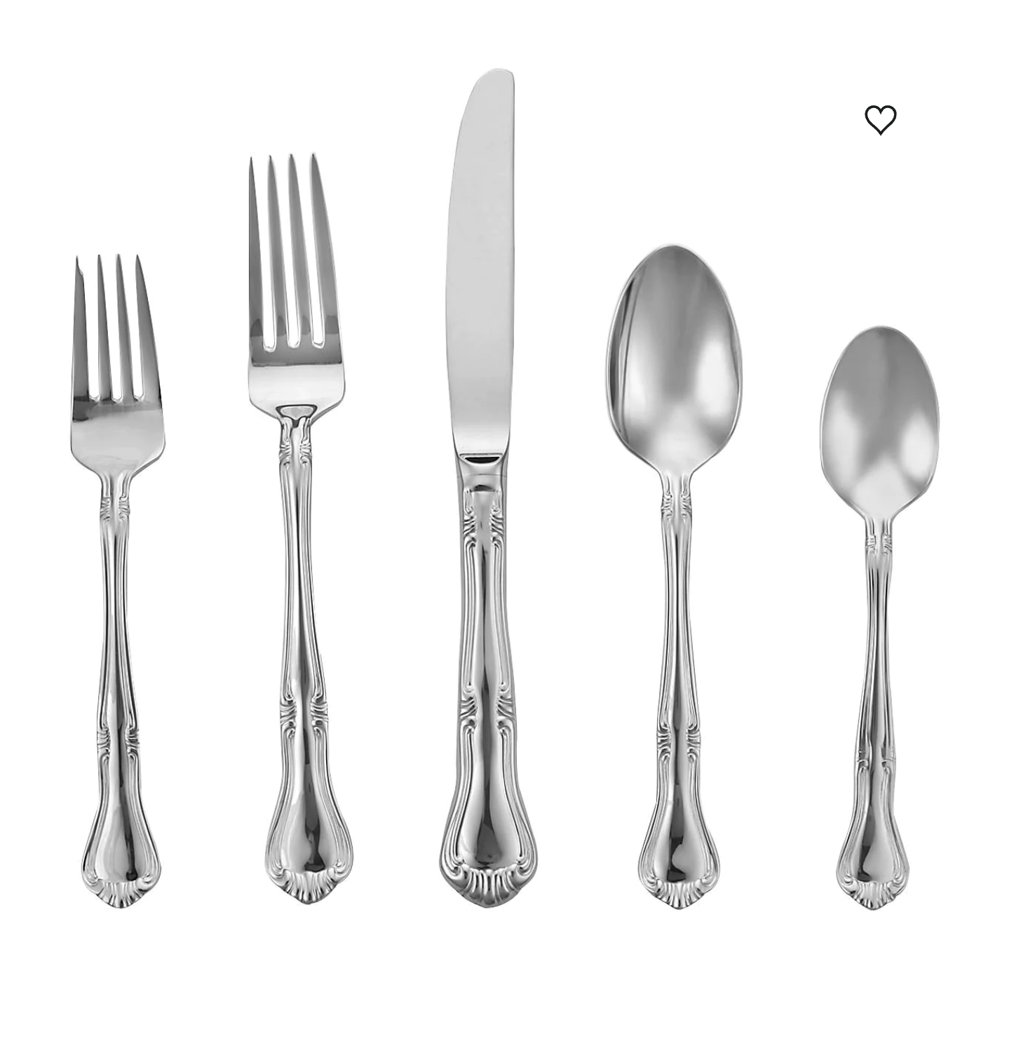 The Valcourt 5-piece Place Setting is crafted from durable 18/10 stainless steel. This set is dishwasher-safe, and includes a dinner fork, dinner knife, salad fork, tablespoon, and teaspoon.