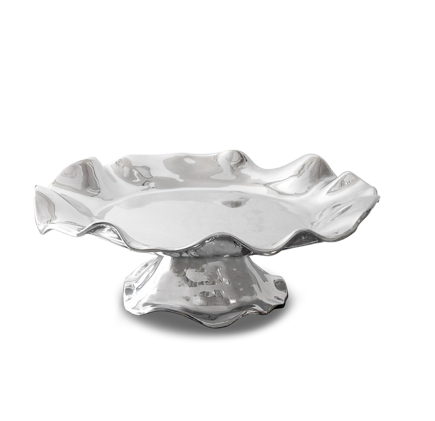 Elevated elegance.Our lovely PEDESTAL Soho ovl Tray is a contemporary classic with a hint of the ancient in its intensely handmade form.Sandcast of gleaming metal, this silver tray makes a stunning statement filled with crackers, olives, or flowers; looks great on the mantle, too!Perfectly proportioned, the piece works with any Beatriz Ball SOHO items.Made of an FDA safe, easy-care 93% aluminum alloy.
