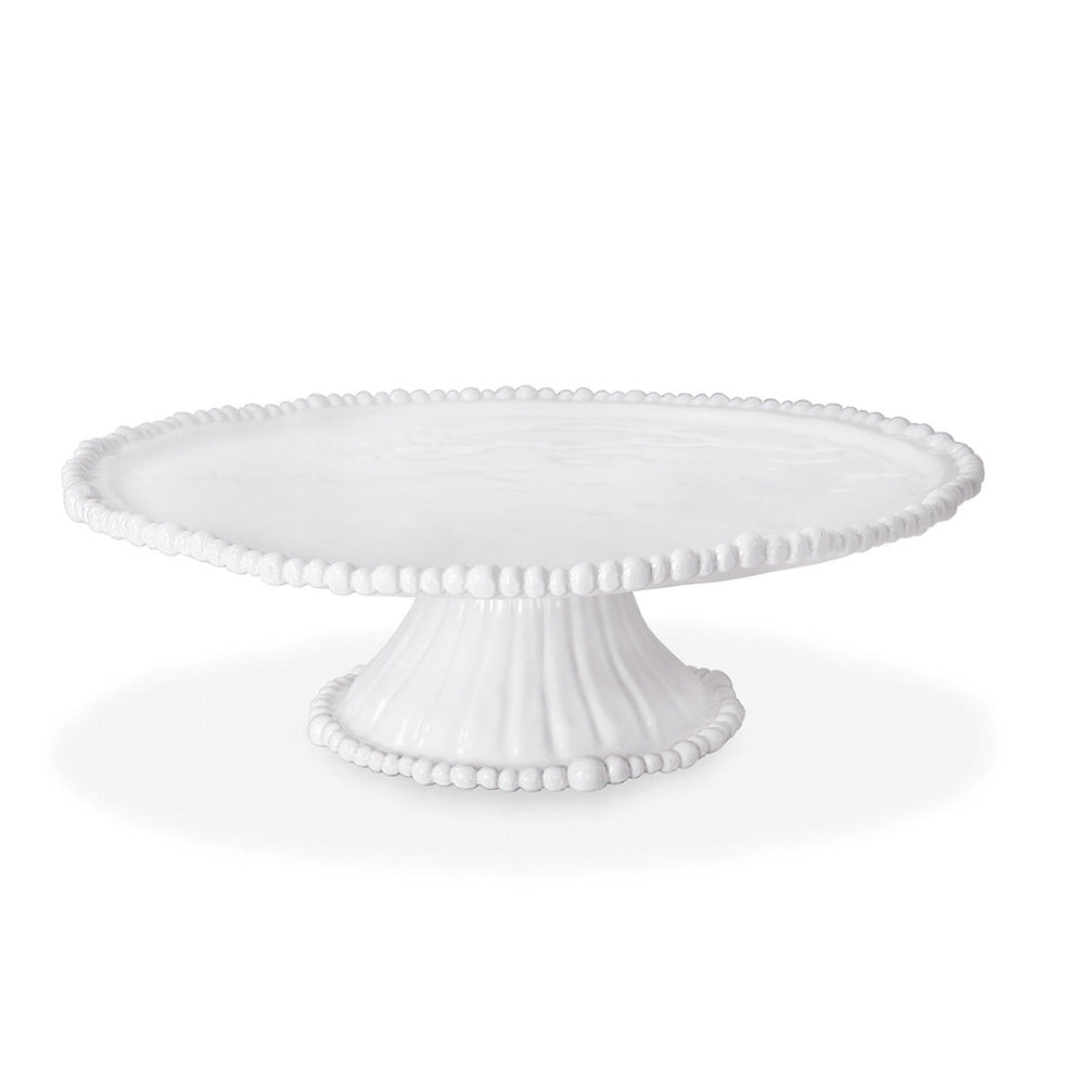 Enhanced with pearl details, the Beatriz Ball Alegria Pedestal Cake Plate is the essence of casual elegance in shimmering white melamine. A natural for cakes and other baked goods, the beautifully designed piece is also an elegant surface on which to serve cheeses, canapés or other small bites. A unique gift for the baker in your life. The versatile and cleverly designed white cake stand boasts a twist-off pedestal for easy storage. Inverted, the base doubles as a dip bowl when placed atop the round platter. The eye-catching and generously proportioned cake stand has the luster, heft and look of a ceramic piece.