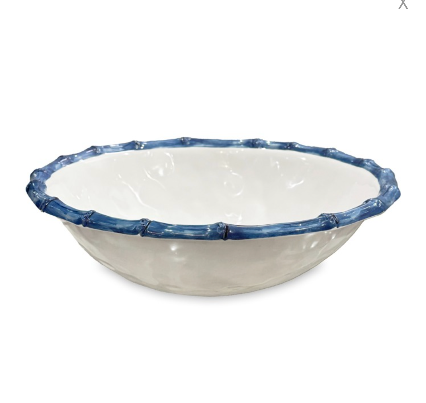 A bowl for all seasons. The VIDA Bamboo Large Salad Bowl (White and Blue), an essential item from Beatriz Ball's VIDA Collection of luxury melamine, is presented here in a white finish and blue rim. With a blue bamboo inspired rim and a brilliant white surface, the stylish and generous bowl works well with our VIDA Bamboo dining sets, serving pieces in White and Blue. Create a table with a carefree and classy Beatriz Ball twist! It looks great when sharing a table with GARDEN Bamboo items from our signature metal line too. Perfect for a variety of serving needs—from chips to fruit to popcorn--the bowl has the luster, heft and look of a ceramic piece. An original Beatriz Ball design. Made of luxury melamine for everyday enjoyment, this piece is ideally suited for indoor and outdoor entertainment. Dishwasher safe (top rack), heavy weight, food safe, BPA and PABA free.