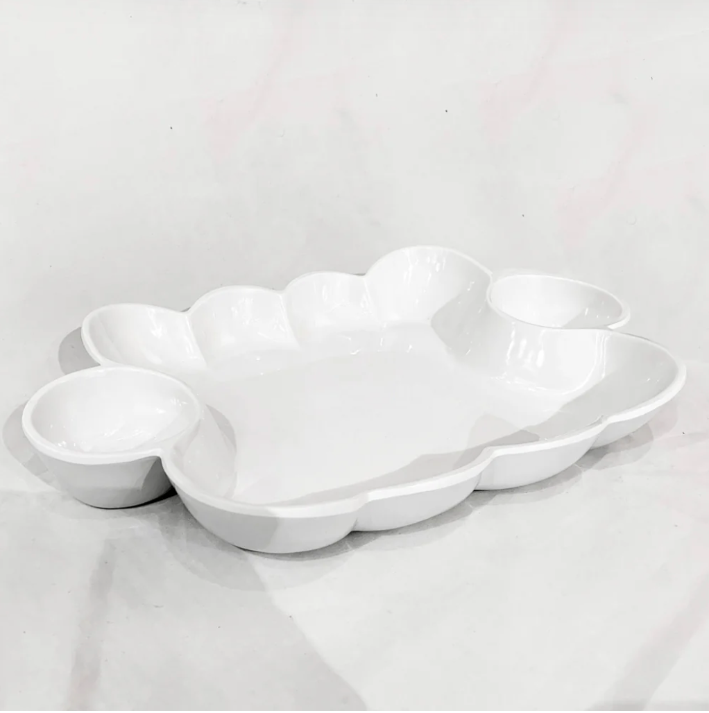 Luxury melamine that multiplies the serving options. When just one dip won't do, use the white VIDA Havana Double Dip (White) to bring food together. With two built-in dip bowls flanking a rectangular serving area, the versatile piece makes a great gift for anyone who loves to entertain. Great for passing around chips and dip, the piece also makes a stylish statement on the dining or patio table. Perfectly suited for indoor and outdoor entertainment, the VIDA Havana Double Dip (White) is design