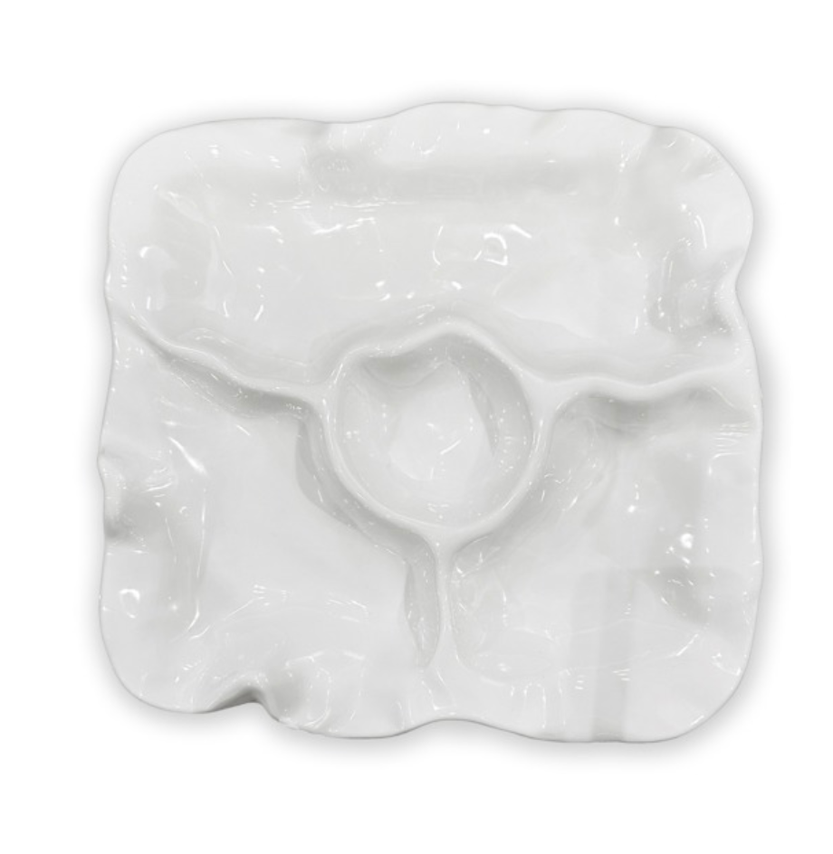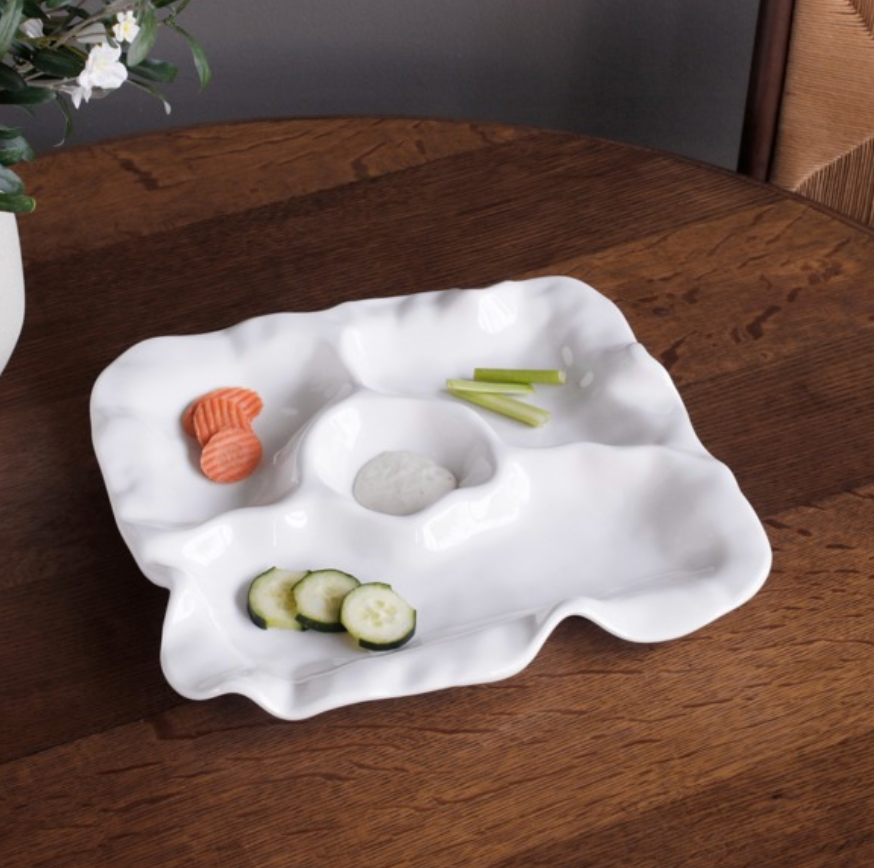 In today's world, "casual" rules, and leave it to Beatriz Ball to lend a touch of class—and artistry--to casual design. Jazzed up by the flirty curves characteristic of this bestselling collection, the VIDA Havana Multi Chip & Dip (White) is equipped with three generous areas for chips (or veggies) surrounding a built-in dip bowl. Inspired by the flowing shapes of organic forms, and made of luxury melamine, the piece is a beautiful design that speaks to many of today's hottest lifestyle trends. This stylish divided piece triples the serving possibilities, and is ideal for presenting dips, garnishes and cocktail fixings--at informal or formal (but never stuffy) gatherings. A gift that will be treasured—and loved. It makes an artistically stylish display. Mix and match with our other melamine items for a lively tablescape. It works beautifully with Beatriz Ball’s metal items, too. An original Beatriz Ball design. Made of luxury melamine for everyday enjoyment, this piece is ideally suited for indoor and outdoor entertainment. Dishwasher safe (top rack), heavy weight, food safe, BPA and PABA free.