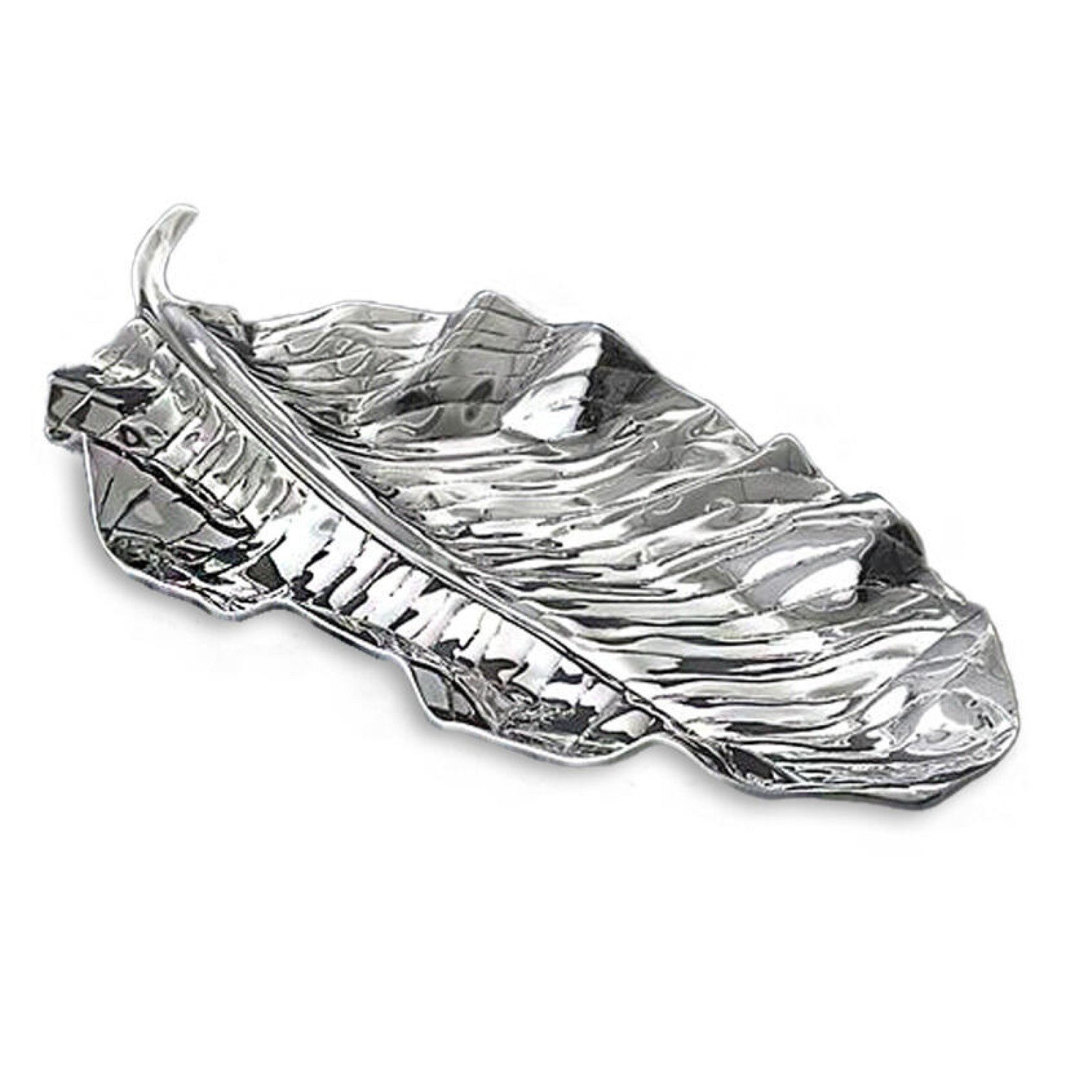 Serene and inspiring, this gleaming metal platter pays homage to Mother Nature in its graceful interpretation of the zebra leaf.
